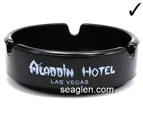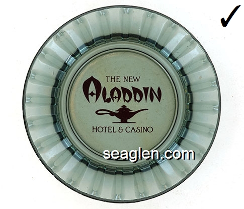 ALA-02 Aladdin Hotel-Casino Las Vegas, NV 3 1/2" Smoke Glass Ashtray Black on white imprint: Milton Prell's Aladdin Hotel / Las Vegas / Nevada ''on the sparkling strip'' Phone: 736-0111 |