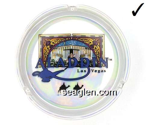 ALA-11 Aladdin Hotel-Casino Las Vegas, NV 4 1/2" Clear Glass Ashtray White on blue imprint: Aladdin Hotel, Las Vegas |