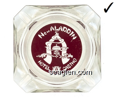 ALA-T3 Aladdin Hotel-Casino Las Vegas, NV 3 1/2" Clear Glass Ashtray Maroon imprint: New Aladdin, Hotel, Casino |