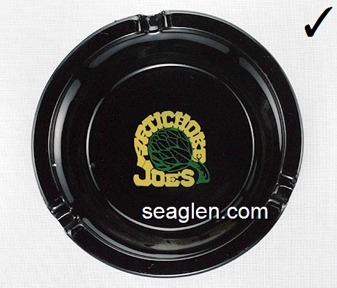 ART-A1 Artichoke Joe's San Bruno, CA 3 3/8" Amethyst Glass Ashtray Yellow and green imprint: Artichoke Joe's, 659 Huntington, San Bruno, California |