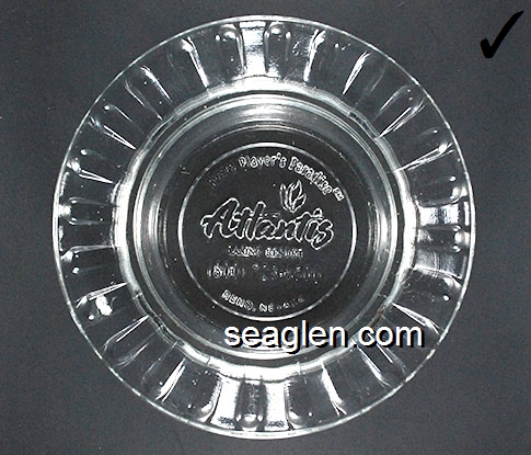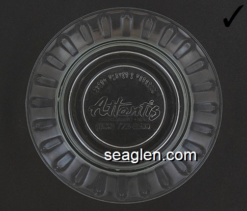 ATL-C2 Atlantis Casino Resort Reno, NV 4 1/2" Clear Glass Ashtray Molded imprint: Every Player's Paradise SM, Atlantis Casino Resort - Reno, (800) 723-6500 |