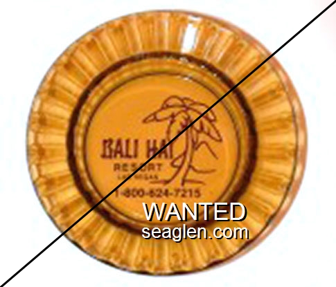 BAH-B1 Bali Hai Motel Las Vegas, NV 4 1/2" Amber Glass Ashtray Brown imprint: Bali Hai Resort, Las Vegas, 1-800-524-7215 |