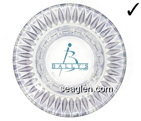 BAL-A1 Bally's Las Vegas Las Vegas, NV 4 1/2" Clear Glass Ashtray Maroon imprint: Bally's, Reno Las Vegas Atlantic City (Like BAL-04, except imprint) |