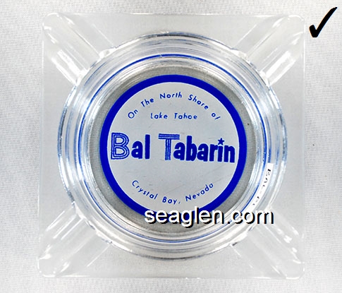 BAL-32 Bal Tabarin Crystal Bay, NV 3 7/8" Clear Glass Ashtray Blue on white imprint: On The North Shore of Lake Tahoe, Bal Tabarin, Crystal Bay, Nevada |