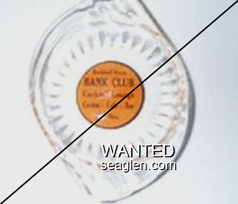 BAN-P1 Bank Club (Reno) Reno, NV 5" Clear Glass Ashtray White on black imprint: The Bank Club of Reno Nevada (SAFEX style) |