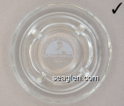 BOR-A1 Bordertown Casino Reno, NV 3 1/2" Clear Glass Ashtray Red on white imprint: Bordertown (Like BOR-04, except Style C) |
