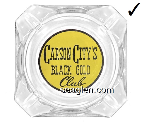 BAC-21 Barton's Club 93 Casino Jackpot, NV 3 1/2" Smoke Glass Ashtray Black on yellow imprint: Motel Cafe Bar, Casino 93, Jackpot, Nevada ''Enjoy Our Slotspitality'' |