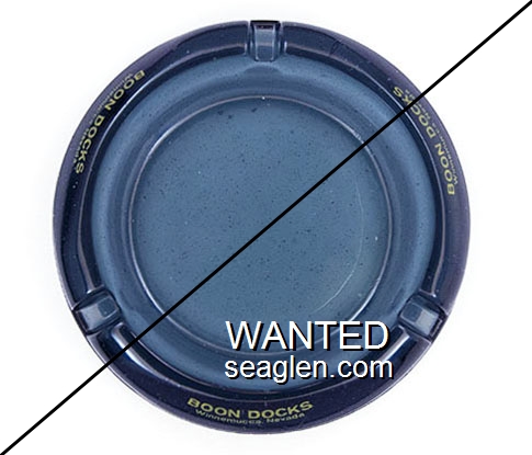 BOC-02 Boon Docks Winnemucca, NV 4 5/16" Blue Glass Ashtray Yellow imprint: Boon Docks, Winnemucca, Nevada |