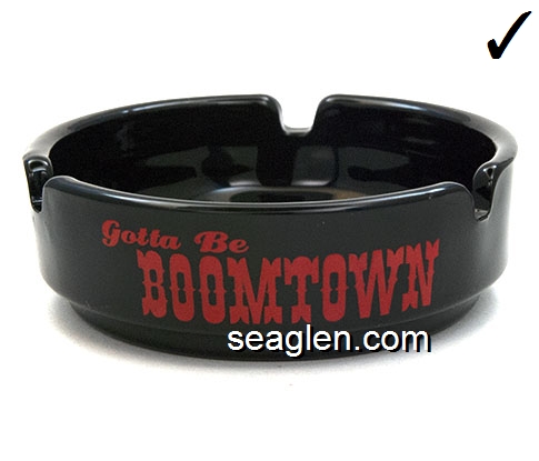 BOT-A3 Boomtown Casino Reno, NV 3 1/2" Smoke Glass Ashtray Red imprint: Boomtown, 7 Miles West of Reno (Like BOT-04, except with smooth bottom) |