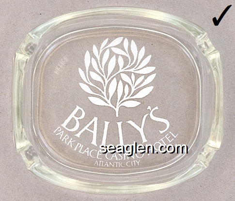 BPP-C3 Bally's Park Place Atlantic City, NJ 3 7/8 x 3 7/16" Clear Glass Ashtray Blue imprint: Bally's, Park Place Casino Hotel, Atlantic City (Like BPP-C2, except blue imprint) |