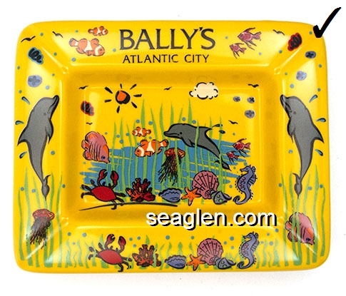 BPP-F1 Bally's Park Place Atlantic City, NJ 5 x 6 1/4" Yellow Porcelain Ashtray Black imprint: Bally's Atlantic City |