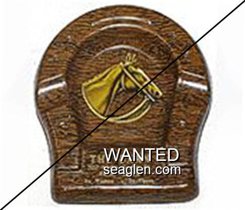 BRN-A1 Barn Club Reno, NV 3 1/2 x 4" Brown Metal Ashtray Yellow imprint: The Barn, 207 North Center St., Reno, Nevada, It's Western - It's Yippee |
