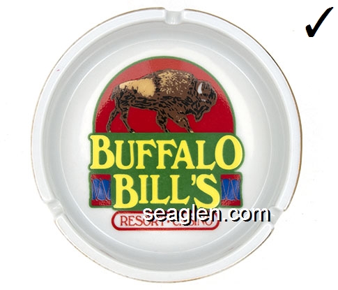 BUF-A1 Buffalo Bill's Resort & Casino Primm, NV 4 1/8" White Porcelain Ashtray Multicolor imprint: Buffalo Bill's, Resort - Casino |
