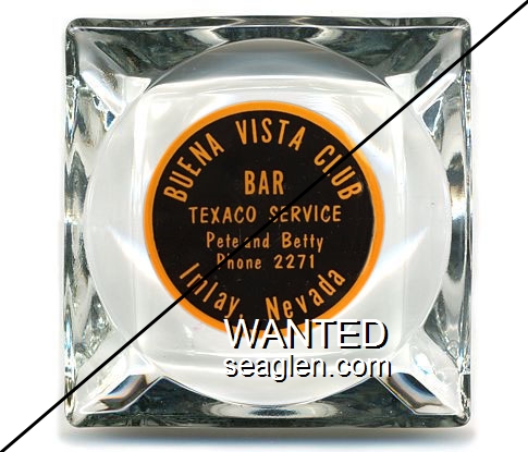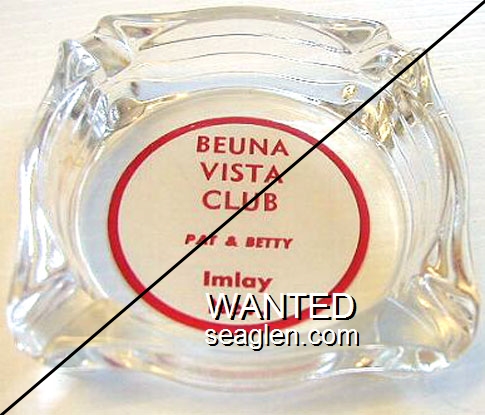 BVC-A1 Buena Vista Club Imlay, NV 3 7/16" Clear Glass Ashtray Red on white imprint: Buena Vista Club, Pat & Betty, Imlay, Nev. |
