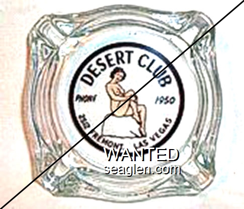 DCV-A1 Desert Club Las Vegas, NV 3 7/16" Clear Glass Ashtray Black imprint: Desert Club, Phone 1950, 2512 Fremont, Las Vegas |