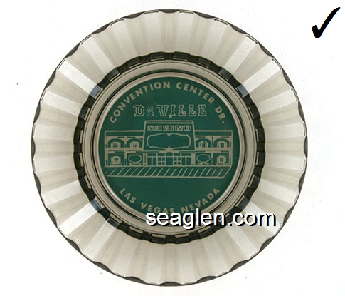 DEV-01 Deville Casino Las Vegas, NV 4 1/2" Smoke Glass Ashtray White on green imprint: DeVille Casino, Convention Center Dr. Las Vegas, Nevada |