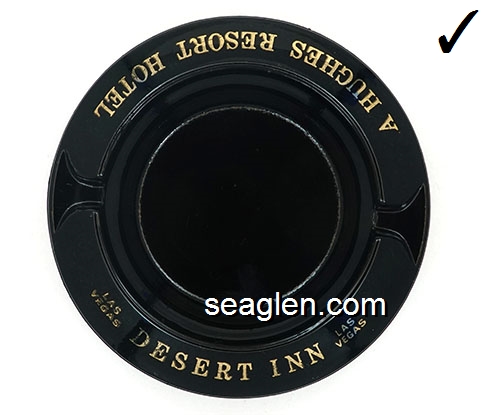DIC-G2 Desert Inn Las Vegas, NV 3 3/4" Black Glass Ashtray Gold imprint: Desert Inn, Wilbur Clark's, $100, Las Vegas, Nevada |
