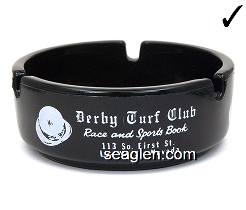 DTC-B1 Derby Turf Club Las Vegas, NV 3 9/16" Amber Glass Ashtray Black imprint: Derby Turf Downtown, Race & Sports Book, 113 So. First St., Las Vegas, Nevada |