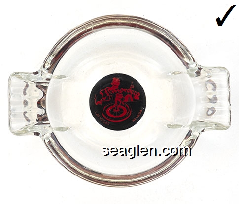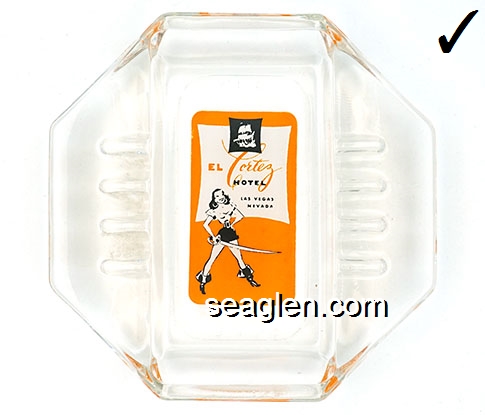 ELC-35 El Cortez Hotel & Casino Las Vegas, NV 5" Clear Glass Ashtray Black and orange imprint: El Cortez Hotel, Las Vegas, Nevada (SAFEX moulded underside) |