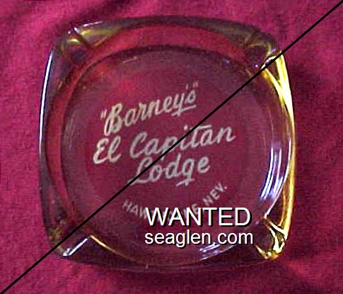 ELC-A1 El Capitan Lodge & Casino Hawthorne, NV 3 1/4" Amber Glass Ashtray White on red imprint: ''Barney's'' El Capitan Lodge, Hawthorne, Nev. |
