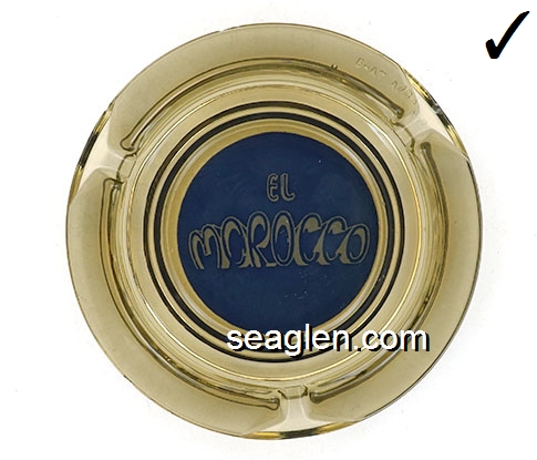 ELM-01 El Morocco Casino Las Vegas, NV 4" Smoke Glass Ashtray White on blue imprint: El Morocco |