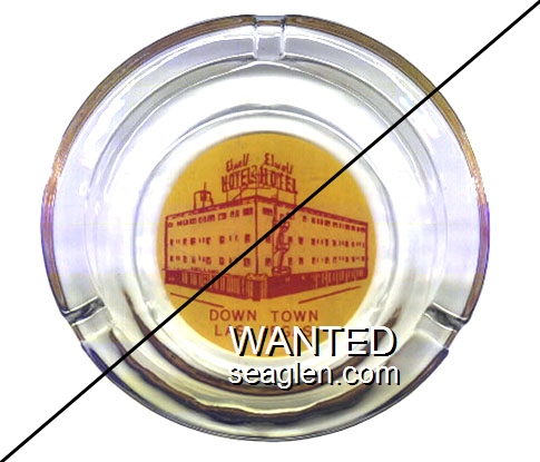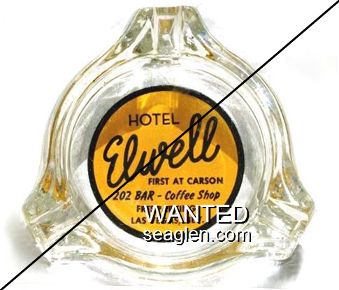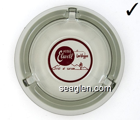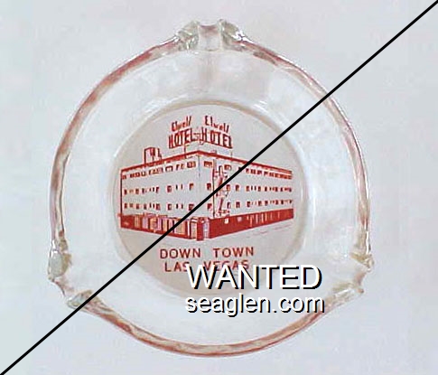 ELW-D1 Elwell Hotel Las Vegas, NV 4 1/2" Clear Glass Ashtray Red on white imprint: Elwell Hotel, Downtown Las Vegas, Nevada |