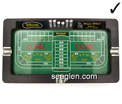 ELC-L1 El Capitan Lodge & Casino Hawthorne, NV 3 1/2" Green Glass Ashtray Red imprint: El Capitan Lodge & Casino, Hawthorne, Nevada, (With AAA & Best Western logos) (Like ELC-14, except with additional logos) |
