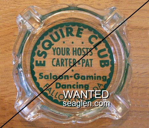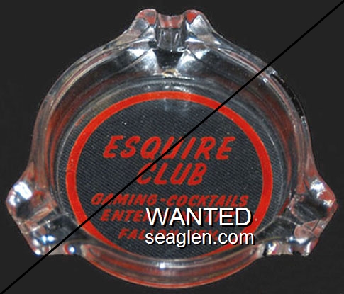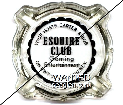 ESQ-B1 Esquire Club Fallon, NV 3 11/16" Clear Glass Ashtray Black imprint: Your Hosts Carter & Bob, Esquire Club, Gaming Entertainment, On Hwy. 50, Fallon, Nev. |