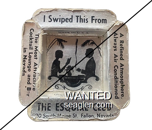 ESQ-D1 Esquire Club Fallon, NV 3 5/8" Silver Paper Ashtray Black imprint: I Swiped This From, The Esquire Club, 20 South Maine St. Fallon, ... and Bar in Nevada, A Refined Atmosphere, Always Air Conditioned |