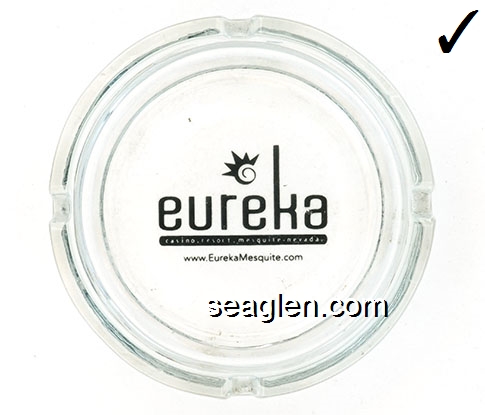 EUC-C1 Eureka Casino-Hotel Mesquite, NV 4 1/4" Smoke Glass Ashtray White imprint: eureka, casino . hotel . mesquite - nevada . , '''where the players win!'' |