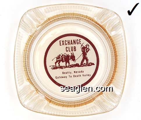 EXC-C1 Exchange Club Beatty, NV 4 1/4" Clear Glass Ashtray Red and white imprint: Exchange Club and Famous Amargosa Restaurant, Saloon - Gambling ... The Corner, Nevada's Gateway to Death Valley, Beatty, Nevada |