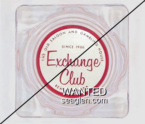 EXC-A1 Exchange Club Beatty, NV 3 11/16" Clear Glass Ashtray Red and white imprint: Exchange Club and Famous Amargosa Restaurant, Saloon - Gambling ... Bar on The Corner, Entrance to Death Valley, Beatty, Nevada |