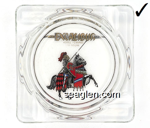 EXC-P2 Excalibur Las Vegas, NV 4 1/2" Clear Glass Ashtray Gold, red and black imprint: Excalibur, Hotel / Casino, Las Vegas |