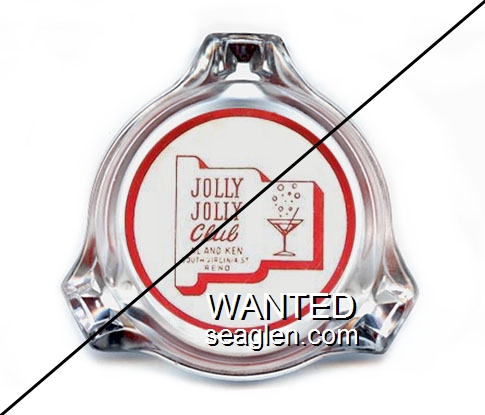 JJC-A1 Jolly Jolly Club Reno, NV 3 1/2" Clear Glass Ashtray Red on white imprint: Jolly Jolly Club, Al and Ken, South Virginia St, Reno |