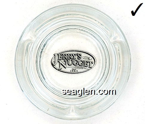 JNC-D3 Jerry's Nugget Casino Las Vegas, NV 4 1/4" Clear Glass Ashtray Black imprint: Jerry's Nugget, Since 1964 |
