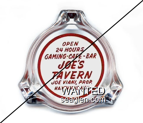 JTV-A1 Joe's Tavern Hawthorne, NV 3 1/2" Clear Glass Ashtray Red on white imprint: Open 24 Hours Gaming - Cafe - Bar, Joe's Tavern, Joe Viani, Prop., Hawthorne, Nev. |