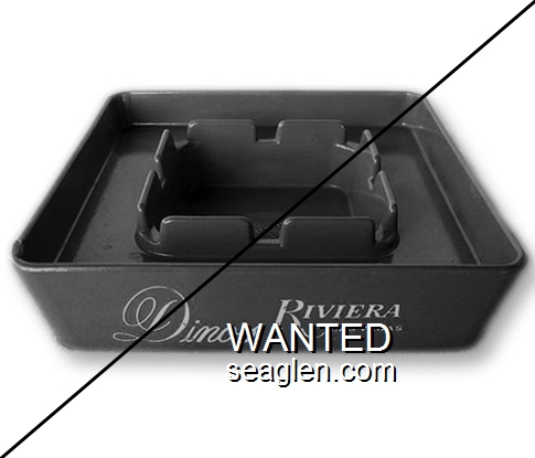 RIV-B1 Riviera Hotel Las Vegas, NV 4" Smoke Glass Ashtray Red on white imprint: The Magnificent Riviera Hotel, Las Vegas, Nevada (Like RIV-04, except with straight sniffers) |