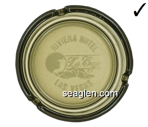 RIV-14 Riviera Hotel Las Vegas, NV 4 1/2" Smoke Glass Ashtray Molded imprint: Riviera, Hotel & Casino, Las Vegas |