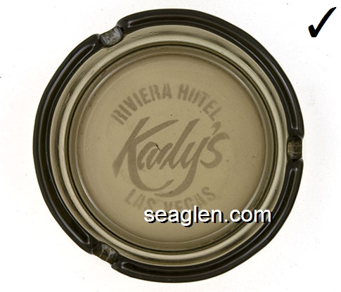 RIV-C6 Riviera Hotel Las Vegas, NV 3 9/16" Smoke Glass Ashtray Etched imprint: Riviera Hotel, Kady's, Las Vegas |