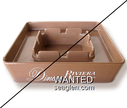RIV-R1 Riviera Hotel Las Vegas, NV 5" Brown Bakelite Ashtray White imprint: Dino's Riviera, Las Vegas, Delmonico (Like RIV-06, except brown) |