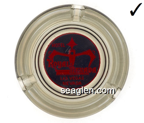 RNV-D6 Royal Nevada Las Vegas, NV 4" Smoke Glass Ashtray Red on blue imprint: Hotel Royal Nevada, Las Vegas, Nevada |