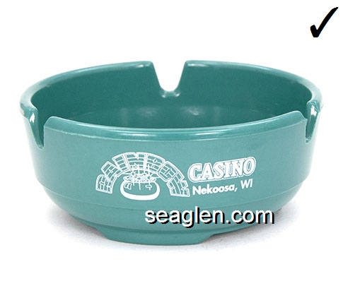 RWI-B3 Rainbow (Wisconsin) Nekoosa, WI 3 3/16" Green Plastic Ashtray White imprint: Rainbow Casino, Nekoosa, WI |