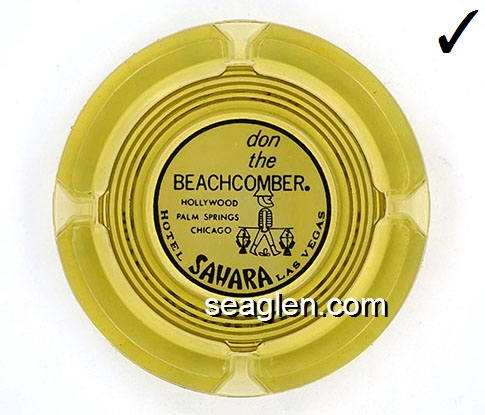 don the Beachcomber, Hollywood, Palm Springs, Saint Paul, Chicago, Hotel Sahara Las Vegas - Black on orange imprint Glass Ashtray