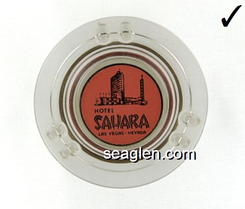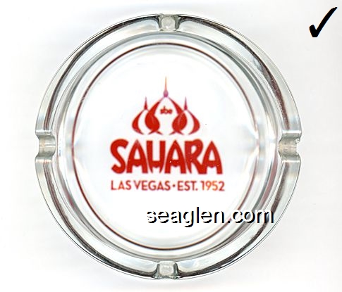 Del Webb's Hotel Sahara, Las Vegas, Nevada - Red on white imprint Glass Ashtray