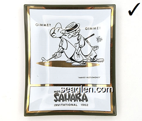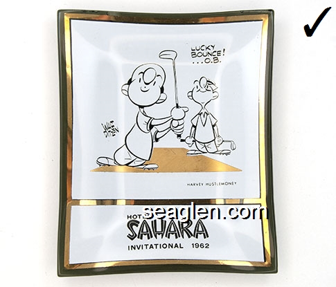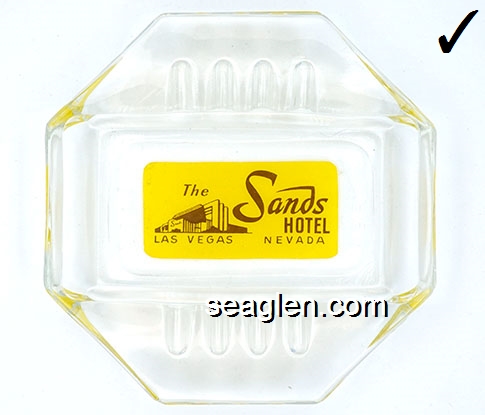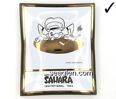 Hotel Sahara, Las Vegas Nevada - Yellow and brown on green imprint Glass Ashtray