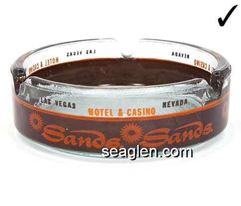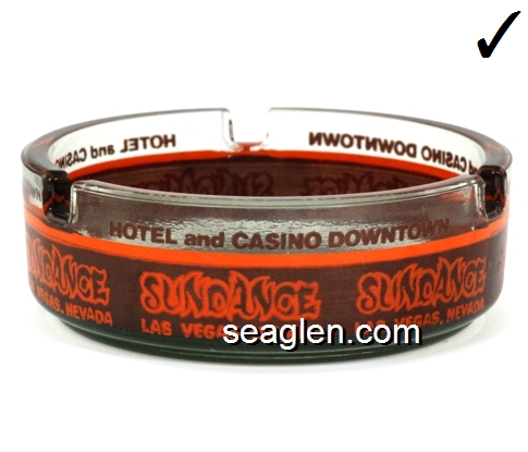 Hotel and Casino Downtown, Sundance, Las Vegas Nevada - Orange on brown imprint Glass Ashtray