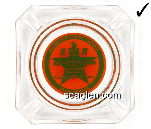 Sagebrush Club & Cafe, Sportsman's Headquarters, Fallon, Nevada, Phone 135W - Brown on green imprint Glass Ashtray