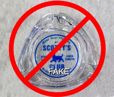 A slash through the picture means that it's a known reproduction or suspected fake. A number of methods have been used to create fakes including silk screening the back of a blank ashtray.