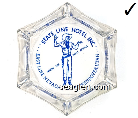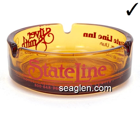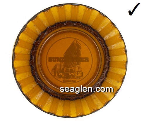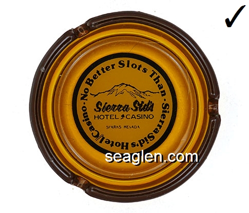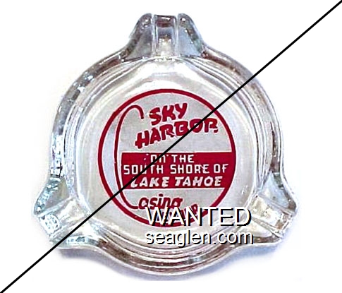 Sundowner, Reno's Largest Hotel (702) 786-7050, Timber Cove Lodge, On the Beach So. Lake Tahoe, (916) 541-6722, Lake Tahoe Inn, Next to Harrah's South Lake Tahoe, (916) 541-2010 - Yellow imprint Glass Ashtray