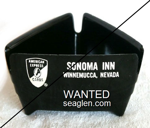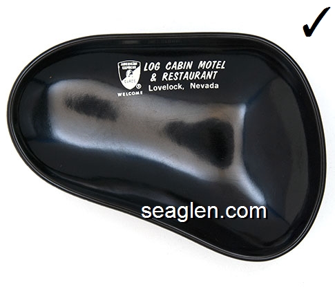 Log Cabin Motel & Restaurant, Lovelock, Nevada, (American Express logo) - White imprint Plastic Ashtray
